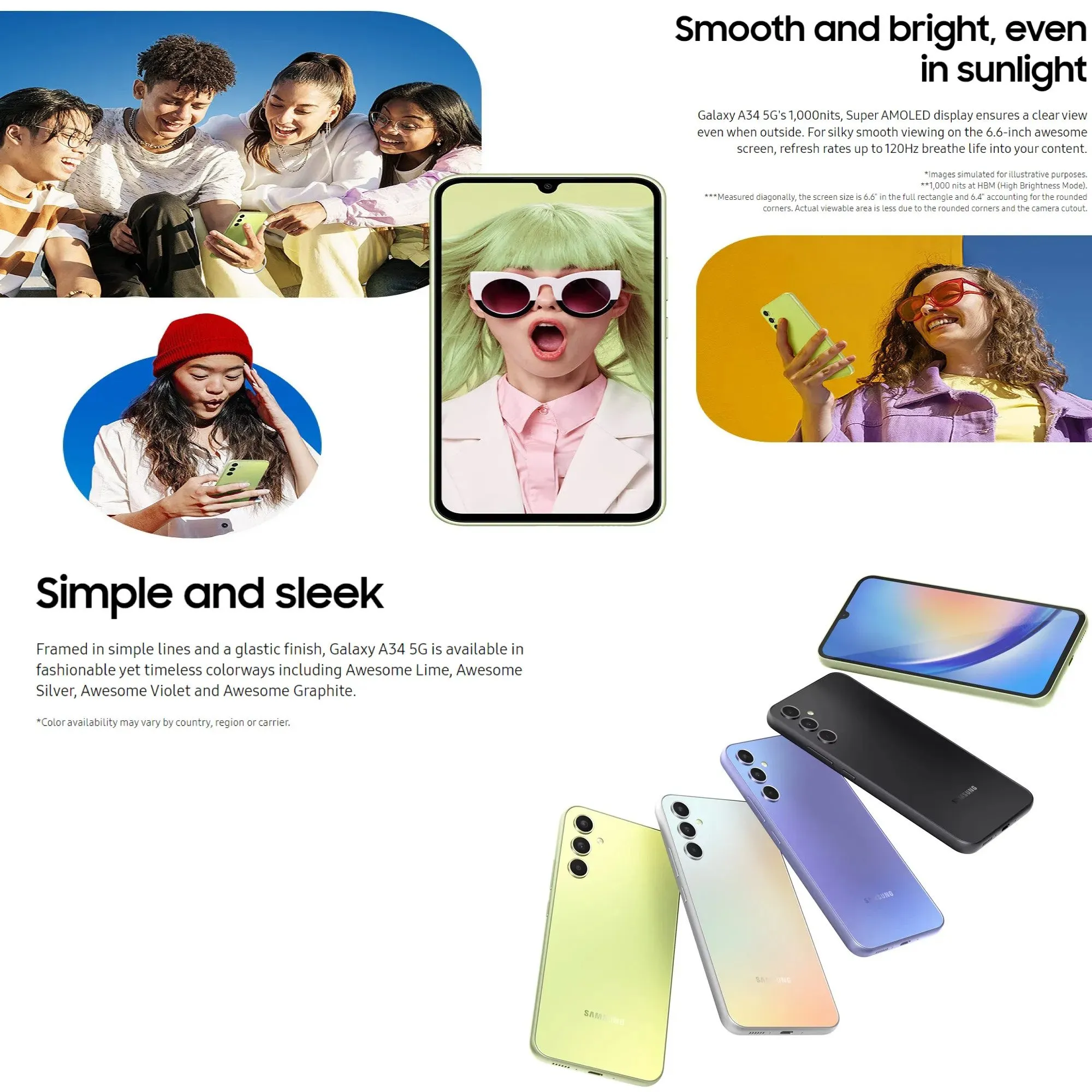 三星Galaxy A34 5G 128GB Rom+8GB Ram/1年本地三星保修(免费:钢化玻璃+后盖)