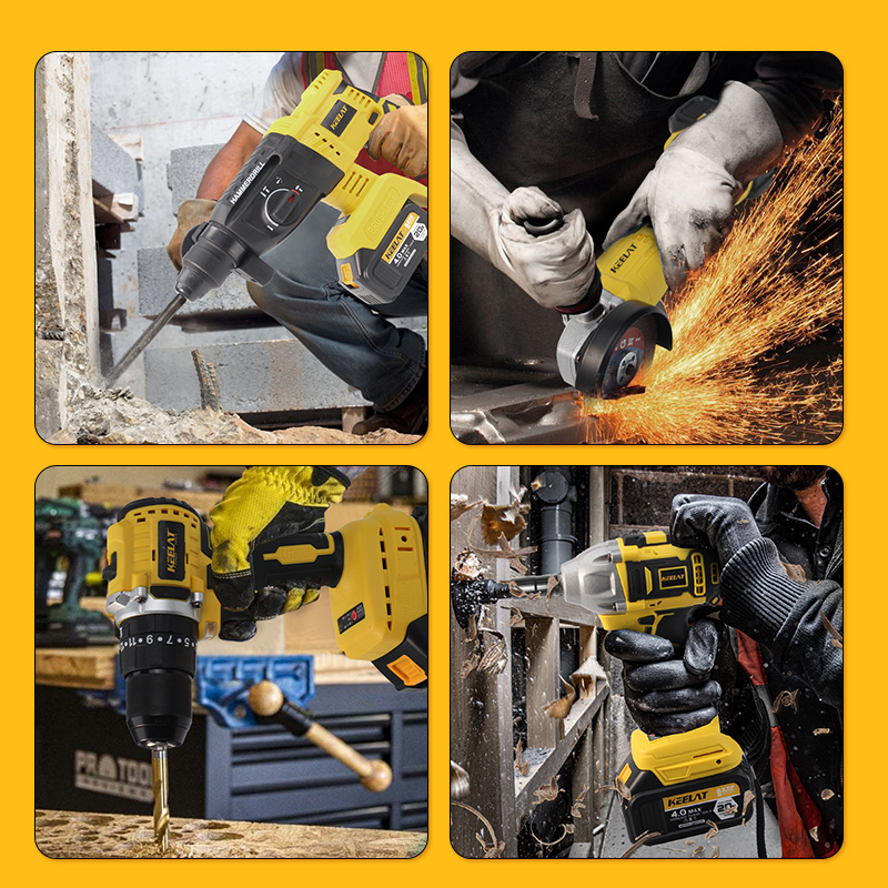 Multi-functional suit combination in one box which including Electric Wrench/Electric Drill/Electric Rotary Hammer/Angle Grinder,work together to make efficiency faster.